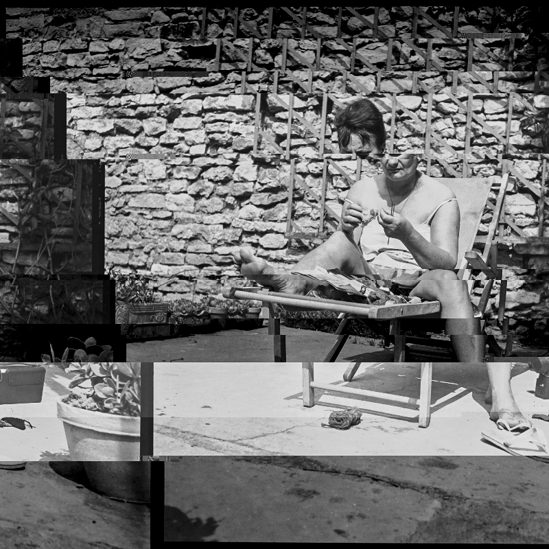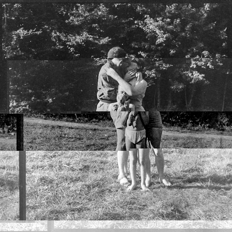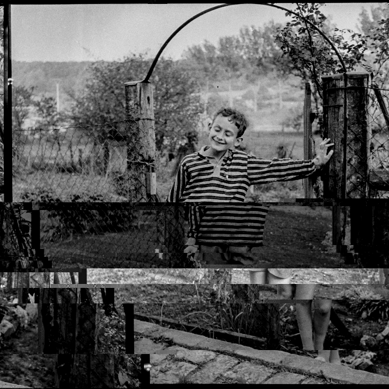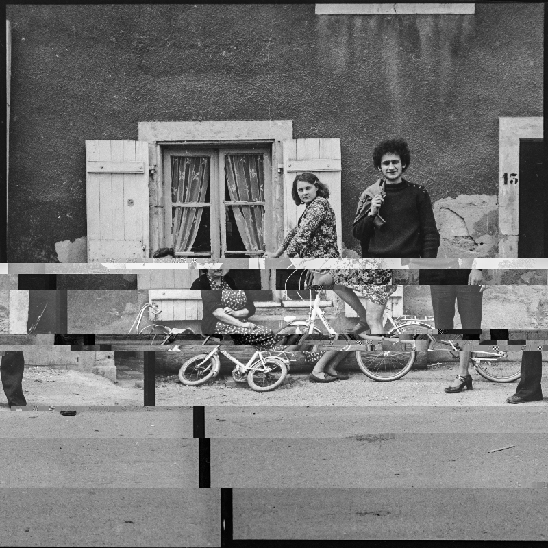 Cette série immense se compose d’une multitude de négatifs, tous traités avec des mécanismes empruntés au Glitch Art. Les images de famille ont été déformées et altérées, autant de sédiments, formateurs d’une mémoire, qui demandent à être rassembler selon le bon agencement. Une chronique qui retrace la vie de cette famille avec ses « blancs » (ou noirs), ses souvenirs plus ou moins nets, synthétisés par les niveaux de gris des négatifs.