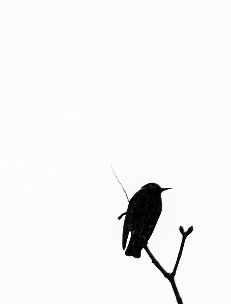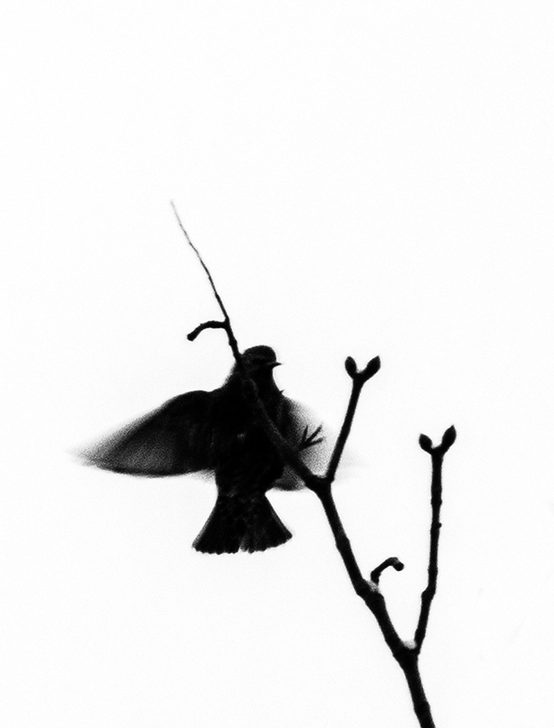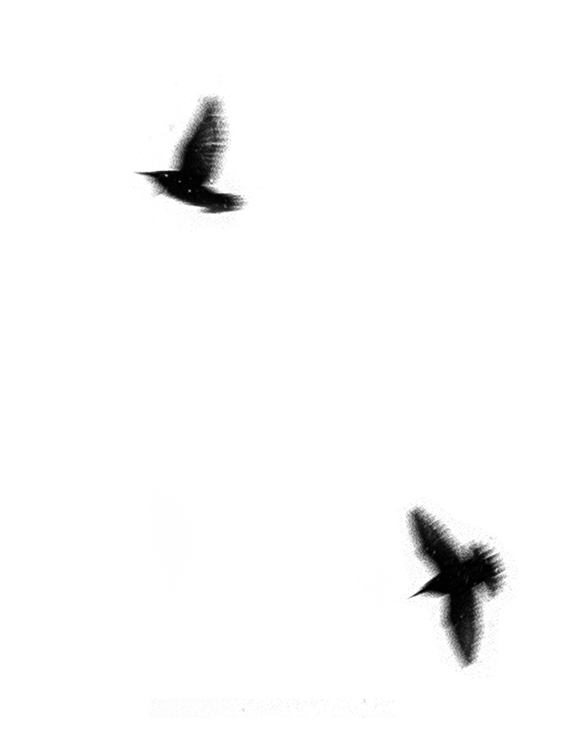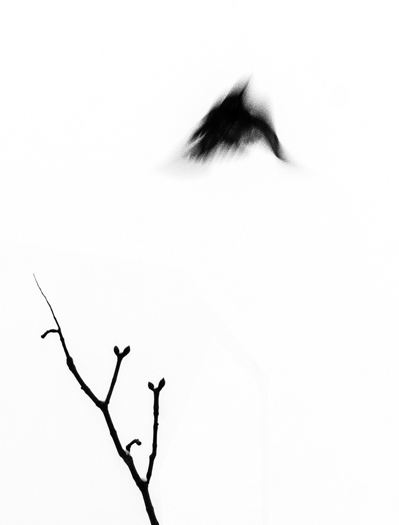 La surface photographique capte le vol de ces oiseaux d’une manière picturale. Proche de l’abstraction par moment, l’image fige le va-et-vient incessant de ces volatiles sur l’aplat blanc du ciel.