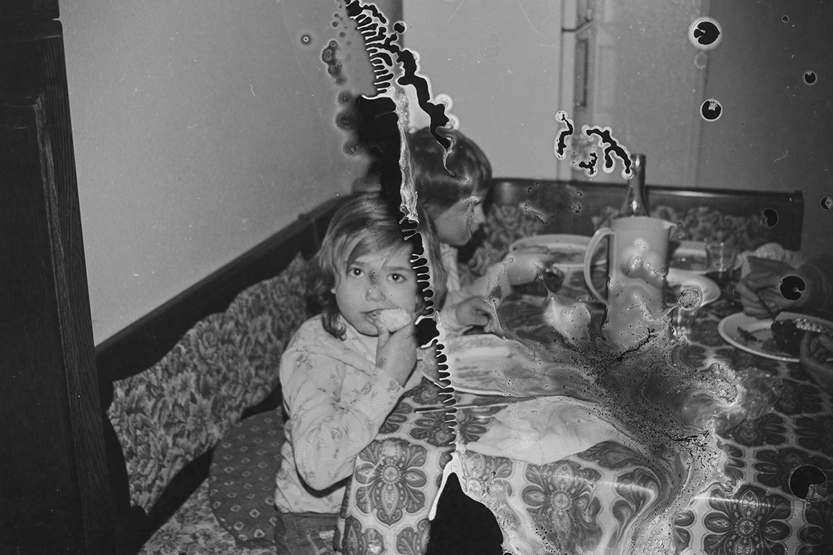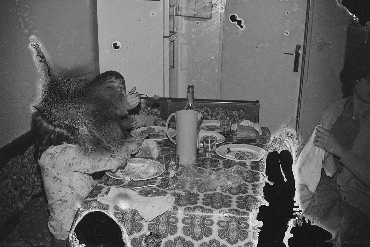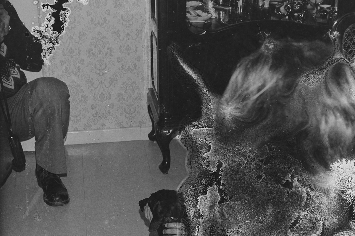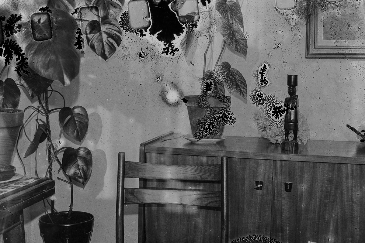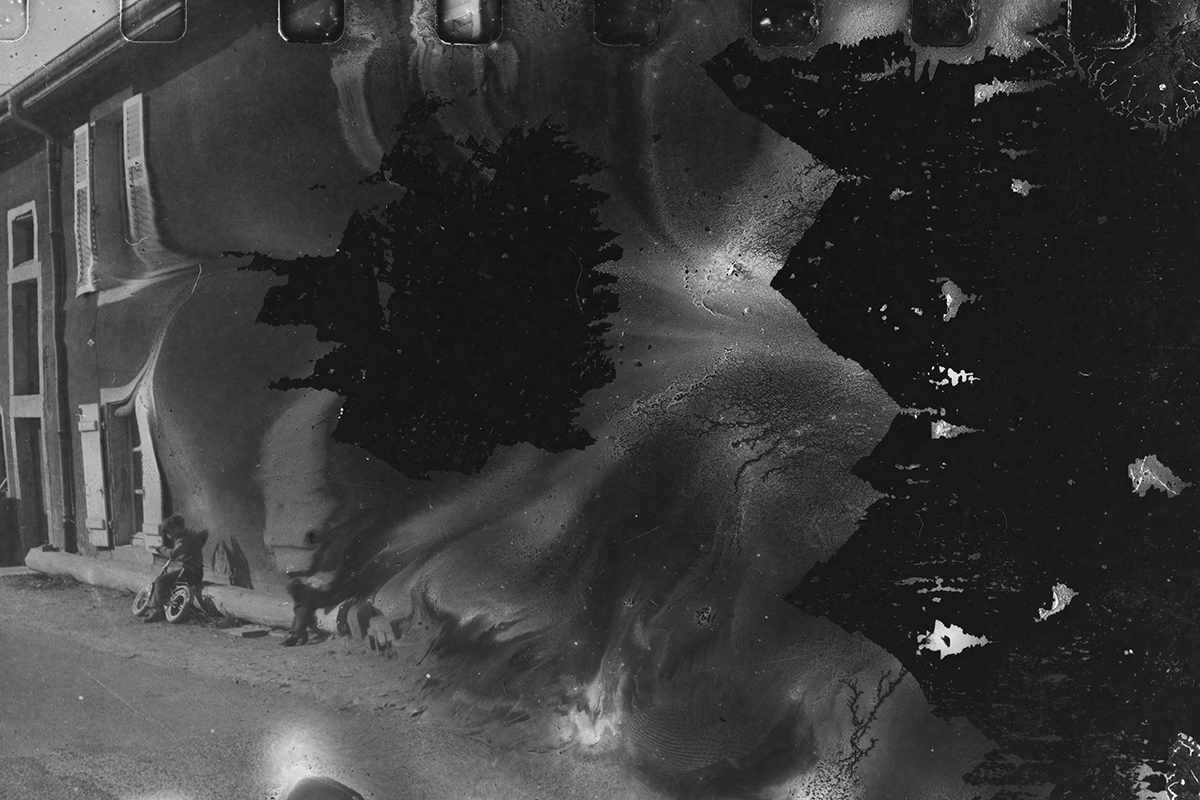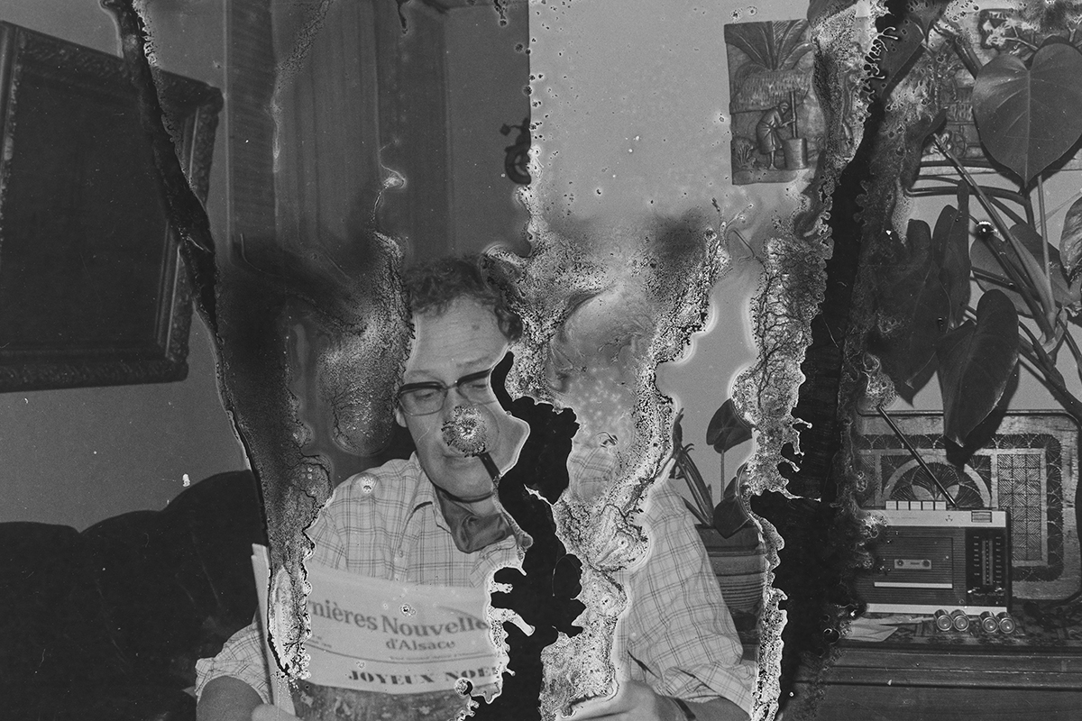 Ces négatifs sont issus de bandes manifestement oubliées ou négligées. Stockés dans de mauvaises conditions, ces dernières ont moisi, l’émulsion a fini par bouger, coller, se désagréger…